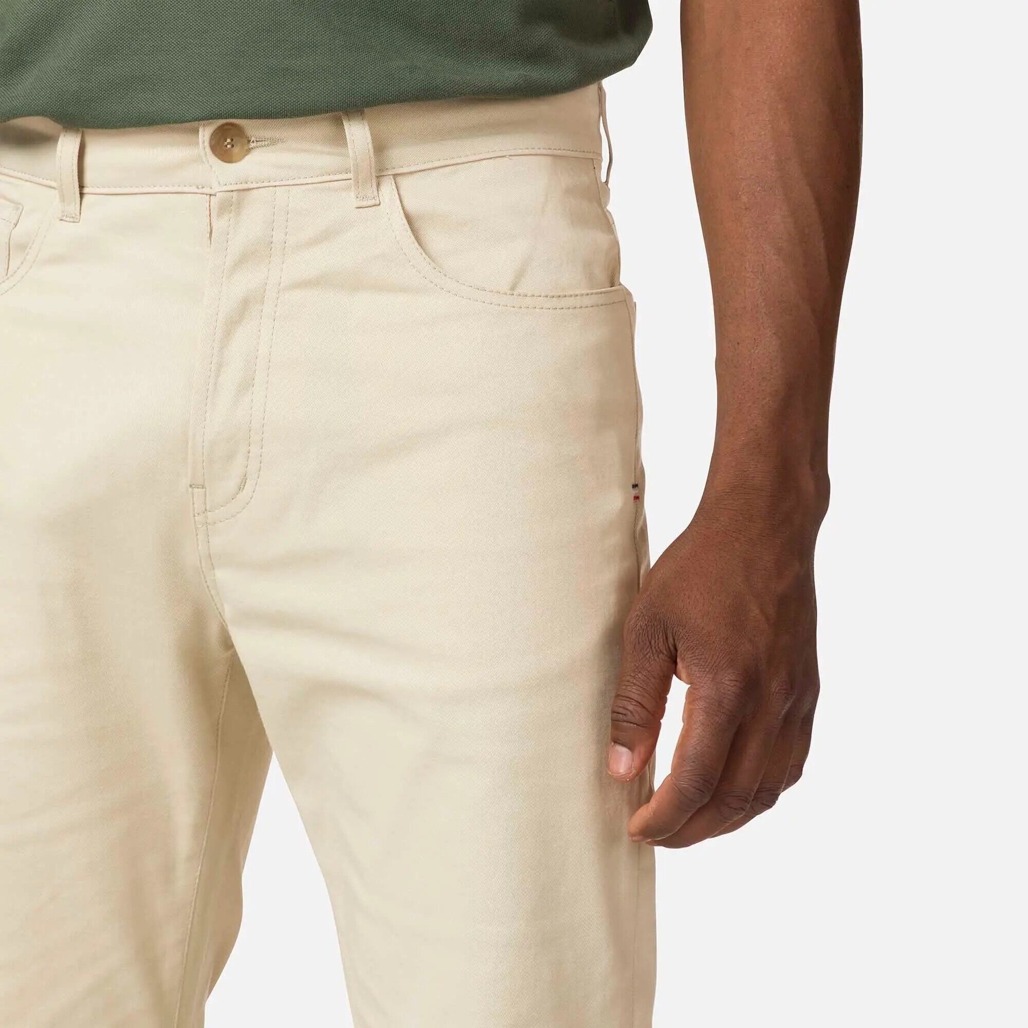 動きやすい伸縮性と街での着用に十分なスタイリッシュさを備えたオーガニックコットン使用のBIO 5 POCKETSです。